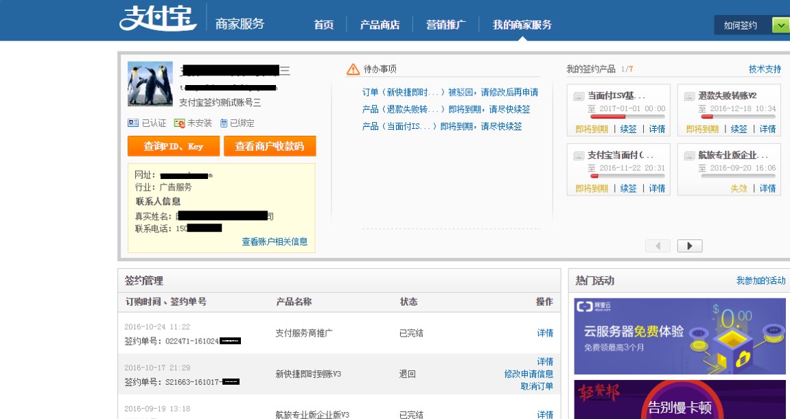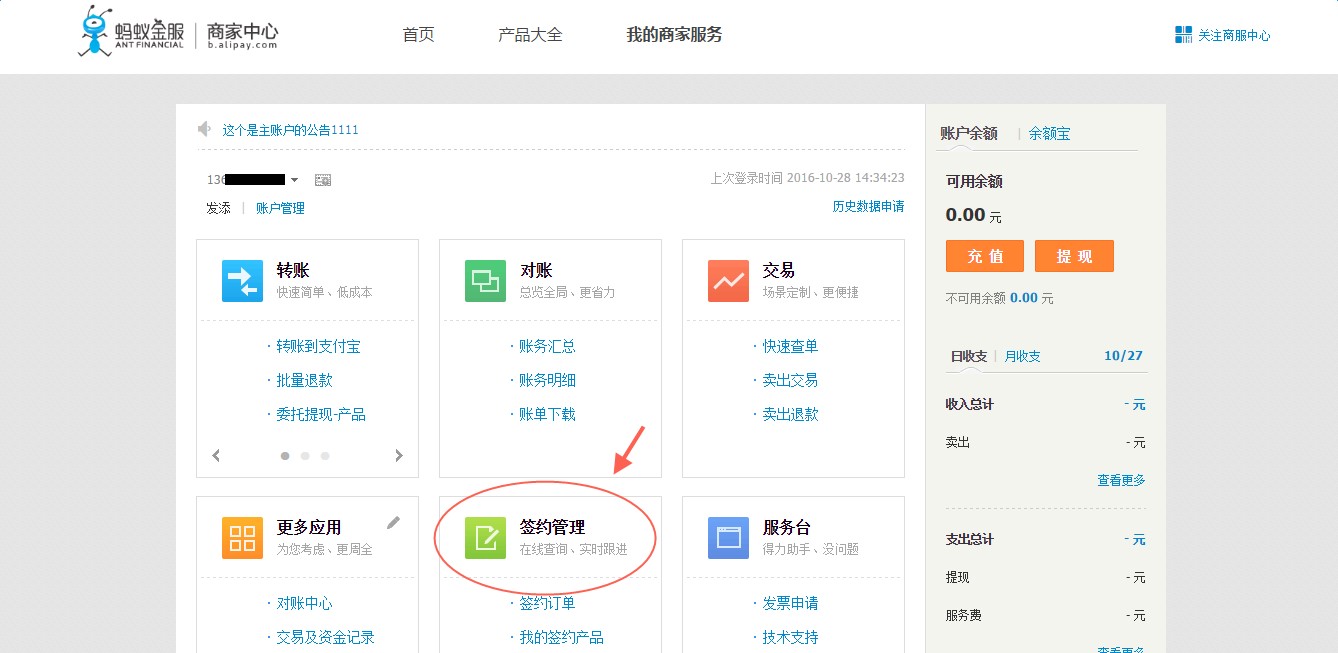 原支付宝商家签约平台将在11月1日开始逐步升级为蚂蚁金服商家中心,升级后个人类型商家可登录,享受与企业商户同等服务。统一登录网址为b.alipay.com或qy.alipay.com均可实现查看签约详情或操作账户资金等。