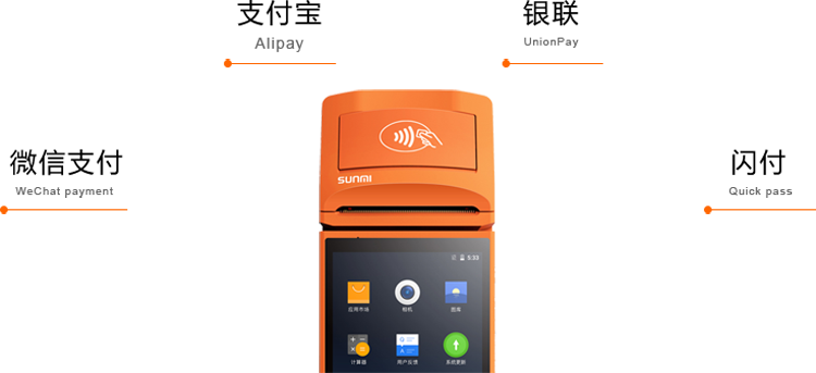 世上最美的事儿,莫过于收款。无论现金、刷卡、插卡、挥手,还是NFC支付、钱包支付、扫码支付、微信支付、支付宝支付,你都能一机搞定,钱款尽收囊中。